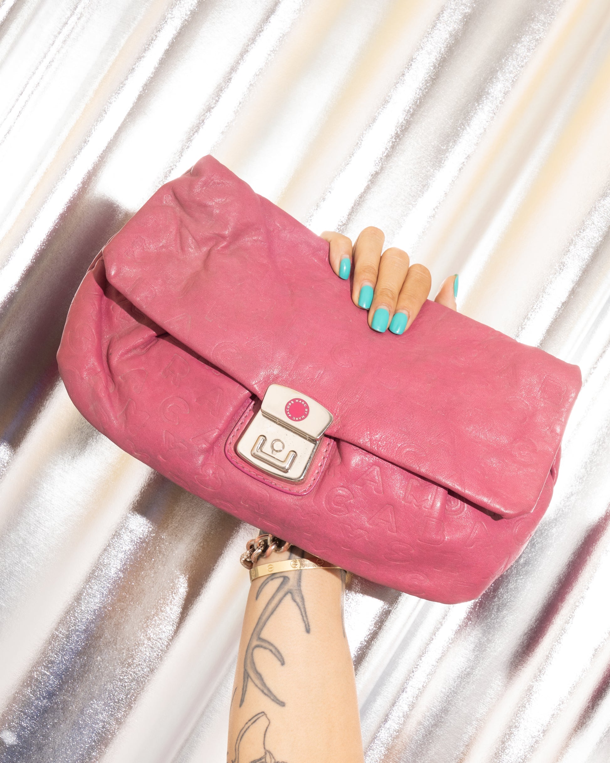 This Marc by Marc Jacobs oversized clutch is early-2010s luxury with a rebellious streak. Crafted from supple genuine leather in a rich pink, it features subtle embossed logo detailing, a bold silver turn-lock clasp, and enough room to carry more than just the essentials.